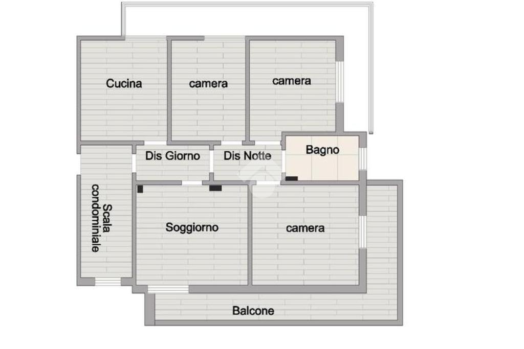 La zona notte è composta da tre camere: una matrimoniale, una doppia e una singola due delle quali servite da balcone, inoltre qui troviamo anche il bagno finestrato, servito da vasca.